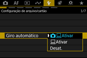 • As imagens captadas com a rotação automática definida para [Desat.] não rodam durante a reprodução, mesmo que defina a rotação automática posteriormente para [Ativar].
