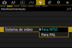 Defina o sistema de vídeo de qualquer televisão utilizado para visualização. Esta configuração determina a taxa de fotogramas disponíveis quando grava os vídeos.