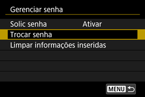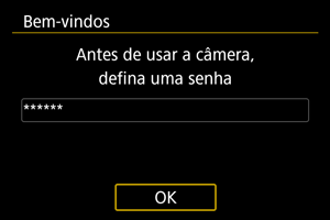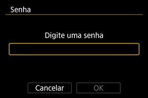 É possível alterar a palavra-passe a introduzir quando o interrutor de alimentação está definido para ou a câmara retoma o funcionamento a partir do desligar auto.