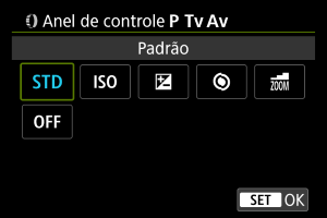 A direção do anel de controlo ao definir a velocidade do obturador e o valor da abertura pode ser invertida.