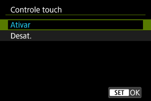 O obturador tátil pode ser especificado. Quando definido para [Ativar], o ecrã [] no canto inferior esquerdo do ecrã de captação muda para [