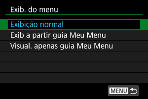 Pode selecionar [Exib. do menu] para definir o ecrã de menu que deverá aparecer primeiro quando carregar no botão .
