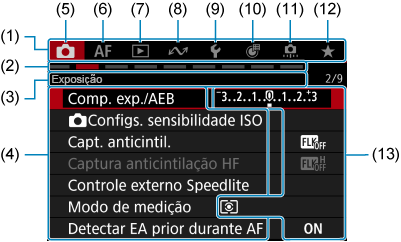 - As operações de menu são também possíveis tocando no ecrã de menu ou usando