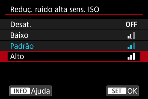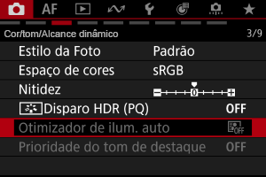 O cancelamento da função limitativa permite-lhe configurar a opção de menu esbatida.
