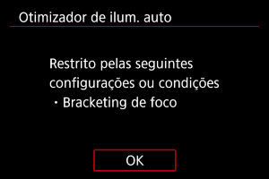 Não é possível definir as opções de menu esbatidas. O uso destes itens foi limitado por outras funções que foram configuradas.