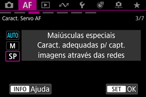 Pode definir parâmetros de rastreamento de Servo AF (sensibilidade de rastreamento do motivo e rastreamento de aceleração/desaceleração) para o motivo e situação de disparo.