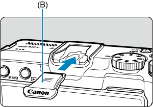 - Deslize a cobertura da sapata totalmente para dentro carregando na parte marcada (B) na figura, conforme mostrado.