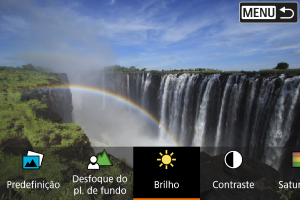 Ajuste a desfocagem do fundo. Escolha valores mais altos para tornar os fundos mais nítidos. Para desfocar o fundo, escolha valores mais baixos. [Automát.] ajuste a desfocagem de fundo para corresponder ao brilho. Consoante o brilho da objetiva (número f), algumas posições podem não estar disponíveis.