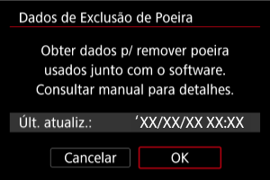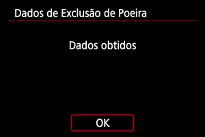 A câmara anexará os Dados de Sujidade a Eliminar obtidos em todas as fotografias doravante. É aconselhável a aquisição dos Dados de Sujidade a Eliminar antes de disparar.
