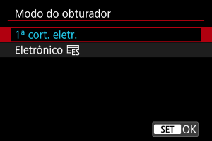 : Funç. Obturador silencioso] para [Ativar] define o modo do obturador para [Eletrônico