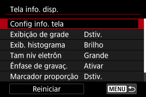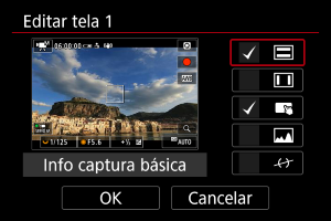 Pode personalizar os detalhes e a informação exibida na câmara quando dispara.