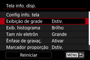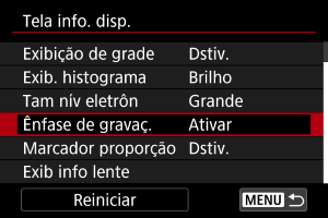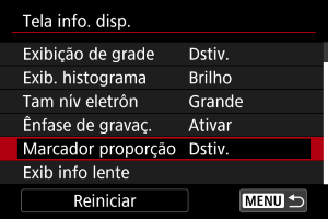 - Os marcadores não são exibidos durante a reprodução de vídeos (os vídeos gravados não são marcados com informação do marcador de rácio).