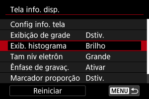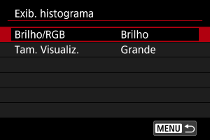 Pode selecionar o conteúdo e tamanho de visualização do histograma.
