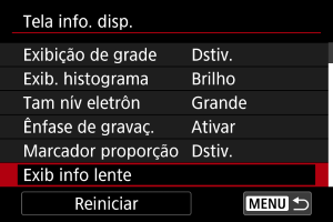 Pode exibir a quantidade de correção definida ao usar objetivas com controlo de aberração esférica.