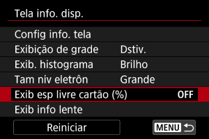 Pode apresentar o espaço livre nos cartões no ecrã.