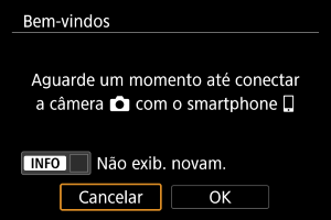 As instruções de ligação a um smartphone são apresentadas se selecionar [OK] quando aparece o ecrã de configuração ().