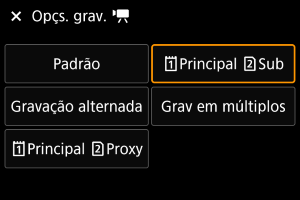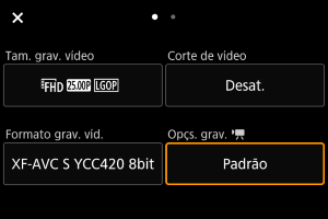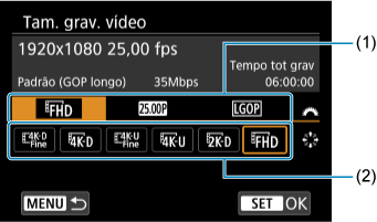 Tal como no modo tirar fotografias, prima o botão para aceder ao ecrã de Controlo Rápido. Sempre que prime o botão