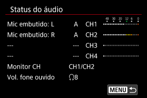 - [Monitor CH] indica os canais definidos em [Monitor disp CH] para [Fones de ouvido] em [