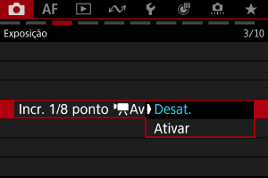 Os valores de abertura podem ser definidos em incrementos de 1/8-stop para gravação de vídeos com objetivas RF. Disponível nos modos de gravação [], [], [], ou [].