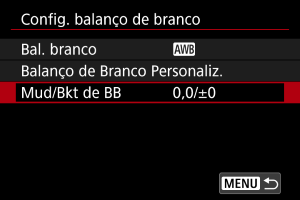 Pode corrigir o balanço de brancos definido. Este ajuste tem o mesmo efeito que utilizar um filtro de ajuste da temperatura da cor ou um filtro de compensação de cor disponível no mercado.