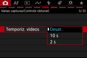 A gravação de vídeos pode ser iniciada pelo temporizador automático.