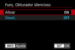 1. Selecione [Disparo: Funç. Obturador silencioso] ().