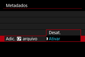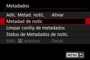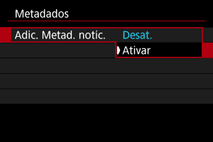 Defina [Adic. Metad. notíc.] para [Ativar].