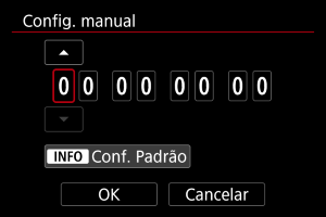 Redefine a hora definida como [Config. de entrada manual] ou [Def. para hora da câmera] para “00:00:00.” ou “00:00:00:” ().