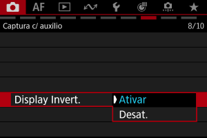 - Selecione [Desat.] se preferir não ter o visor invertido quando o ecrã estiver voltado para o motivo.