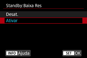 Defina como [Ativar] para preservar a carga da bateria e controlar o aumento da temperatura da câmara durante o modo de espera.