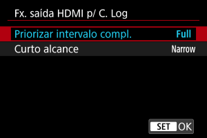 1. Selecione [Disparo: Fx. saída HDMI p/ C. Log] ().