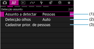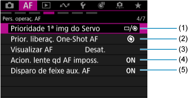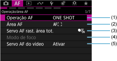 Menus dos separadores: AF (Fotografias)