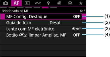 - [Modo de foco] é apresentado quando são utilizadas objetivas sem um interruptor de modo de focagem.
