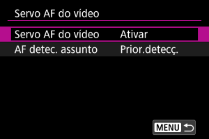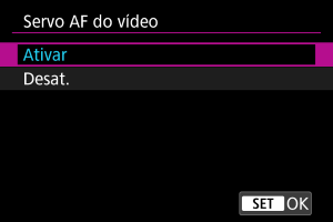 Selecione [Servo AF do vídeo].