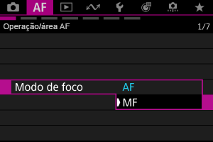 - Quando o modo de focagem está definido para AF na câmara ou objetiva