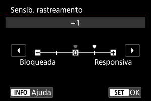 Definição da sensibilidade de rastreamento do motivo para Servo AF em resposta ao movimento de não-motivos através de pontos AF ou motivos que se desviam dos pontos AF.
