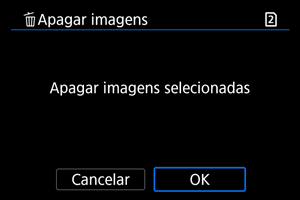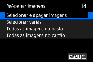 • Quando selecionar [Todas as imagens na pasta] ou [Todas as imagens no cartão] em [Reprodução: Apagar imagens], todas as imagens na pasta ou no cartão serão apagadas.
