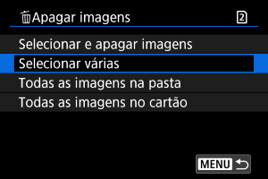 • Selecione [Selecionar várias] em [Reprodução: Apagar imagens].