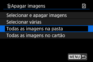 Apagar Todas as Imagens numa Pasta ou num Cartão