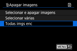 • Se selecionar [Todas imgs enc], todas as imagens filtradas pelas condições de procura serão apagadas.