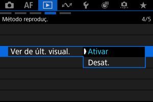 ]: a reprodução continua a partir da última imagem apresentada (exceto quando acabou de disparar).