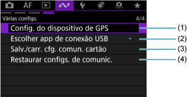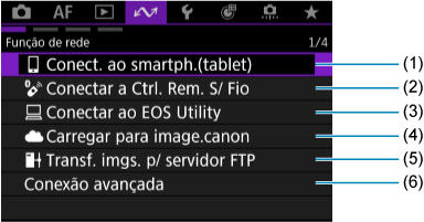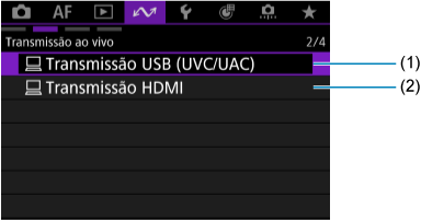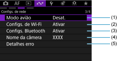 - Algumas opções do menu não podem ser configuradas enquanto a câmara estiver ligada a computadores ou outros dispositivos através de um cabo de interface.