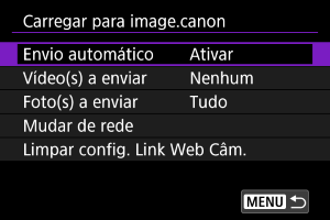 - [Quando a câmera está ligada]: O envio automático começa quando a câmara é ligada.