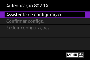 A seleção de [Autenticação 802.1X] permite definir, verificar ou eliminar definições de autenticação 802.1X usando um assistente de configuração.
