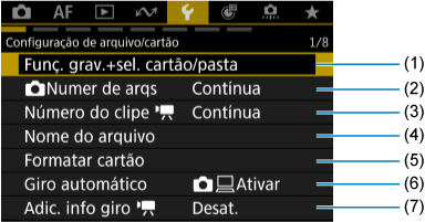 - (1) Funç. grav.+sel. cartão/pasta