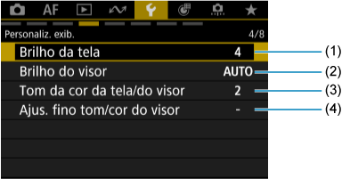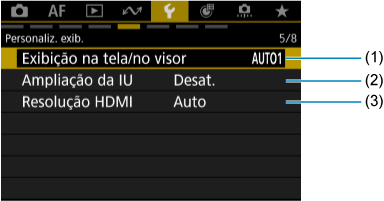 - (1) Exibição na tela/no visor