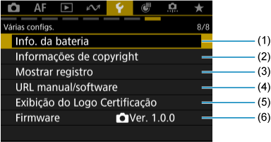 - (1) Info. da bateria