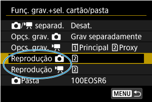 ] definido para [Padrão]/[Gravação alternada], selecione o cartão para gravação e reprodução.