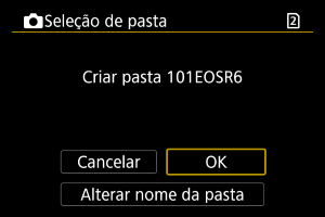 Pode criar ou selecionar a pasta para guardar fotografias. Pode também mudar o nome das pastas.