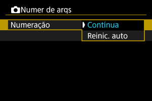 Para a numeração contínua de ficheiros, independentemente da mudança de cartões ou da criação de pastas
